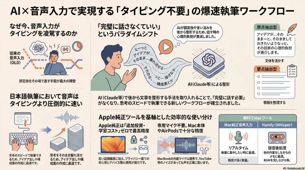 - AIで後から整形できる前提が変わったことで、音声入力のハードルが下がった